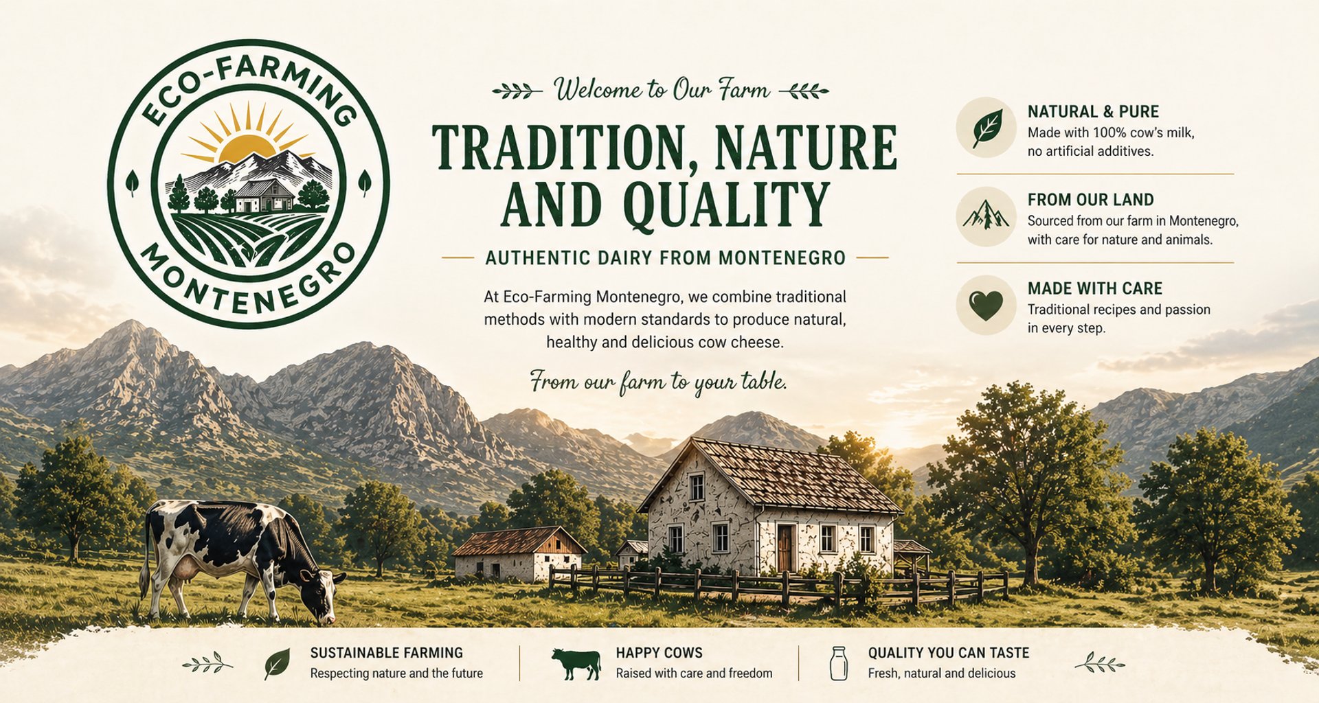 Located in the beautiful landscapes of Montenegro, our farm is surrounded by clean air, natural pastures, and mountain spring water. Our cows are raised in an stress-free, natural environment, allowing us to produce milk of exceptional quality. From milking to production, everything is handled with precision and care.